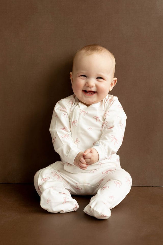 Pink Bows Cotton Modal Footie