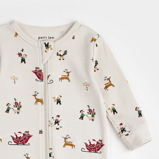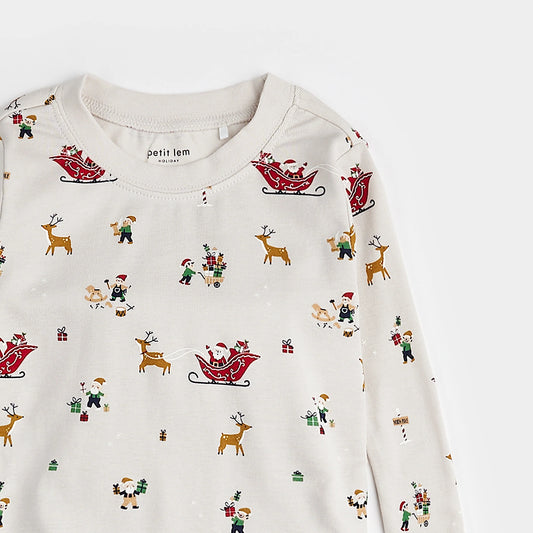 Santa's Workshop Print on Crème PJ Set