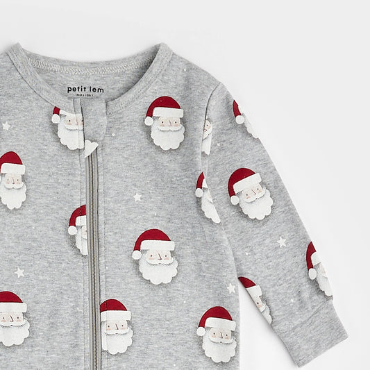 Santa Print on Heather Grey Sleeper
