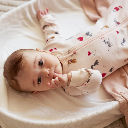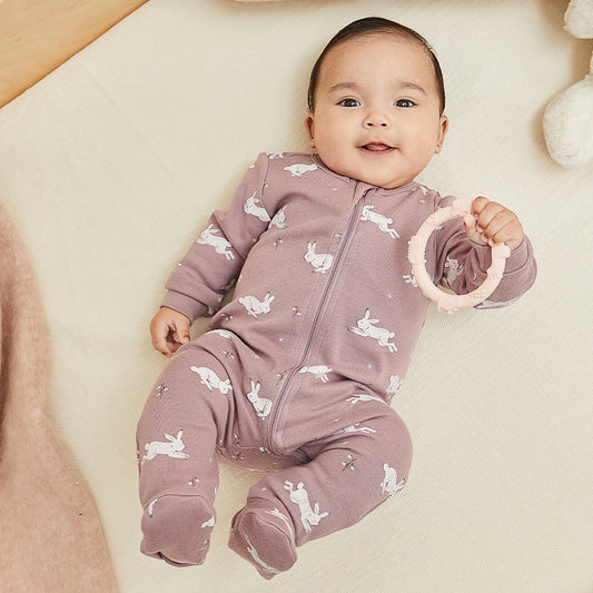 Meowentine Print on Silver Peony Footed Sleeper