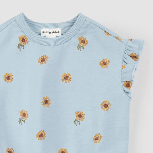 Baby Sunflower Print on Celestial Blue Shorts Set