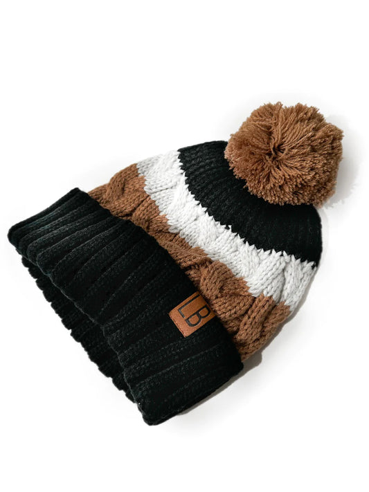 Tricolor Beanie Lined With Fleece - Tokyo Red