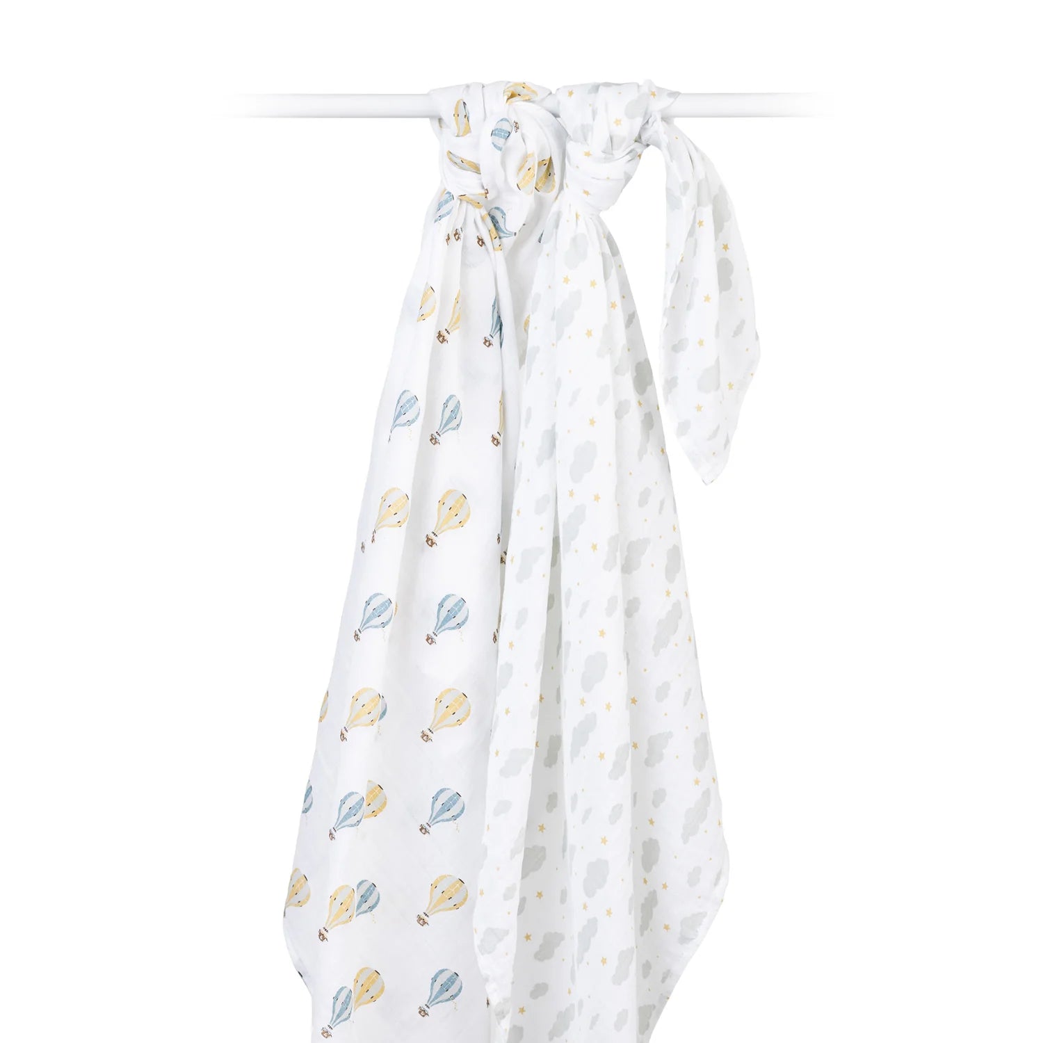 2 Pack Swaddles - Hot Air Balloon + Clouds