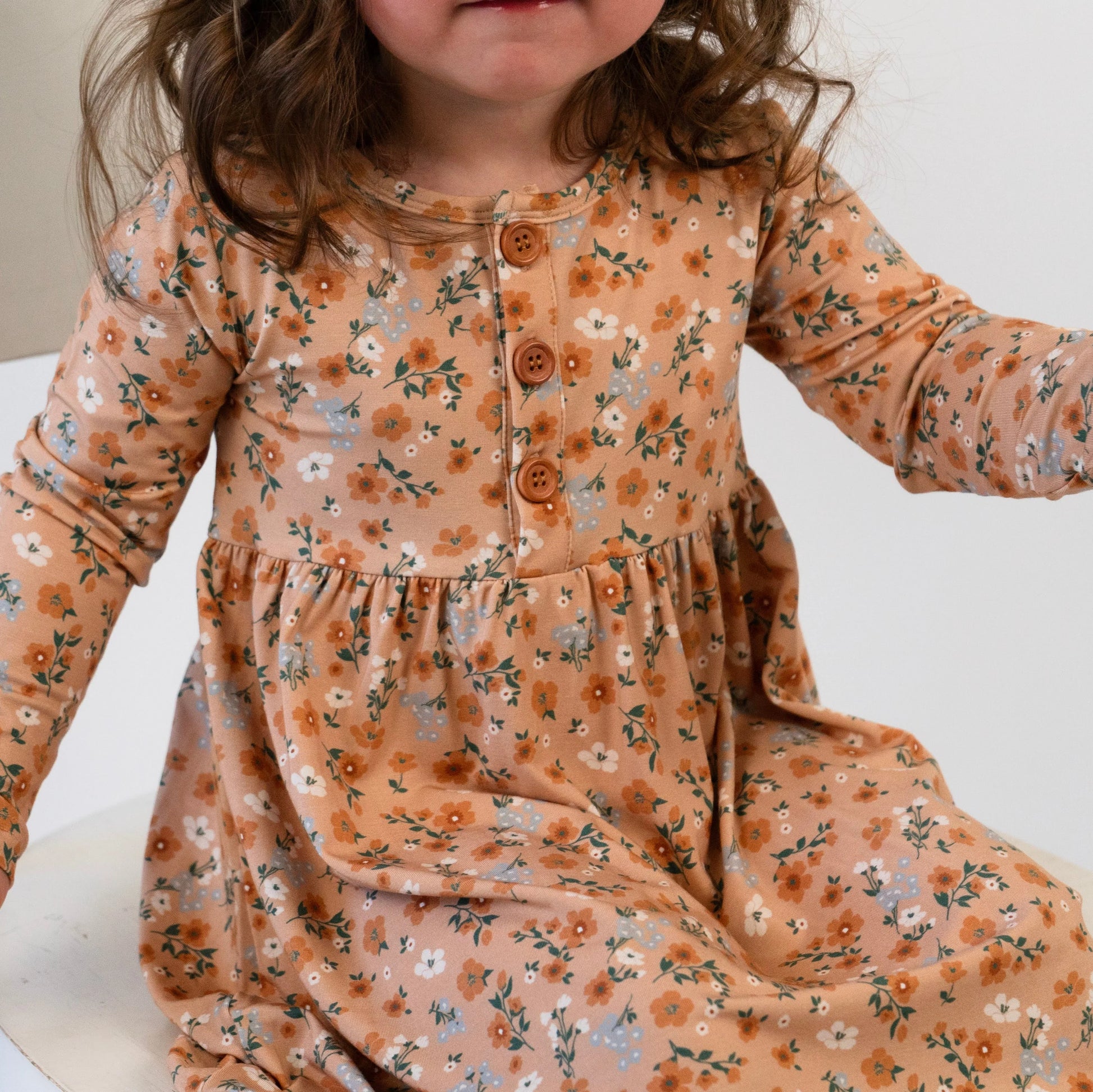 Made from soft and breathable Bamboo Rayon, this long sleeve peplum dress is perfect for Fall. Features a wooden button down front and a gathered waist.