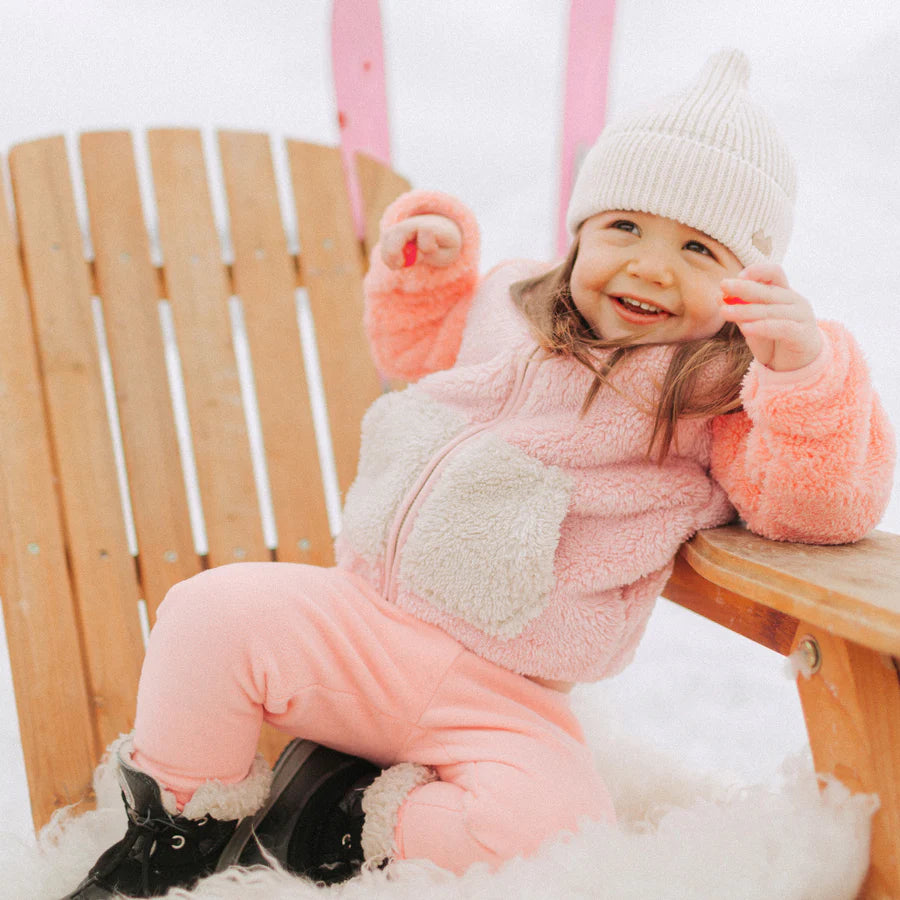 Pink polar pants that is perfect for the season and will keep your mini warm by keeping the heat close to her body.