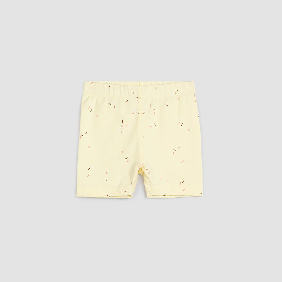 These light yellow cycle shorts have an all-over sprinkles pattern for ice cream fanatics. The gently elasticated waistband offers a snug fit that keeps the shorts comfortable enough for all-day wear.