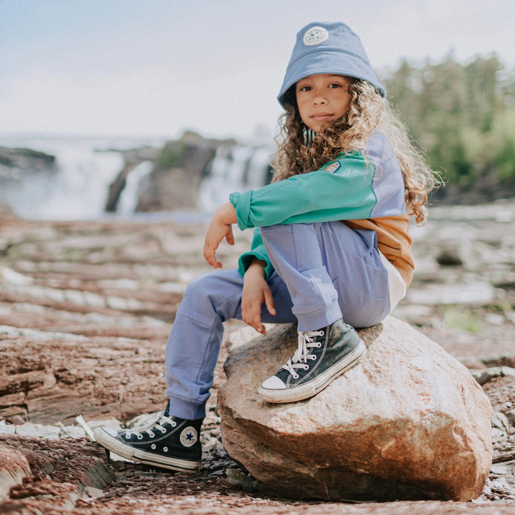 Blue relaxed fit pants with large pockets that give it a cargo style, made in a comfortable French terry.