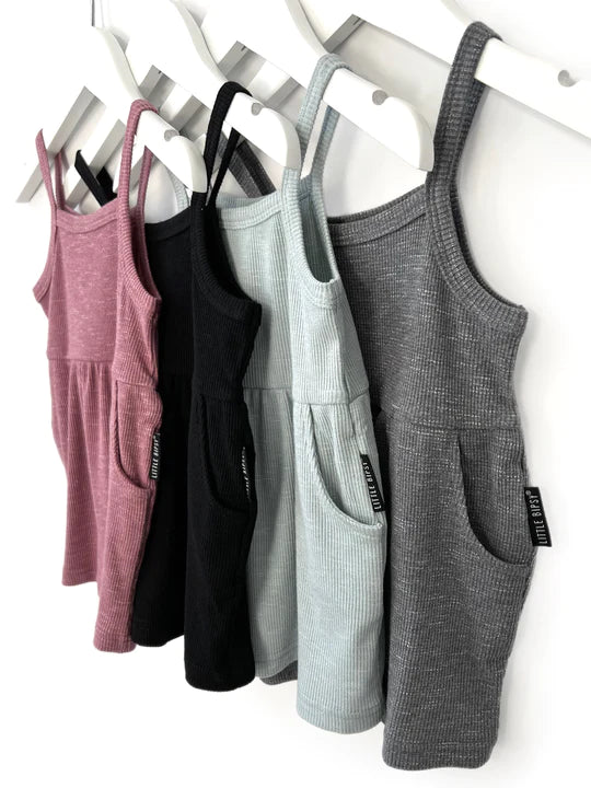 Flowy. Cozy. Classic. Sporty or chic. Dress your little styler up or down in our ribbed tank dress. Want more coverage? Pair with our Ribbed Biker Shorts for a comfortable, matching undergarment.