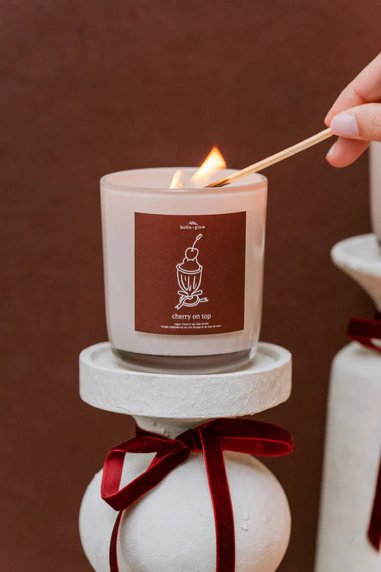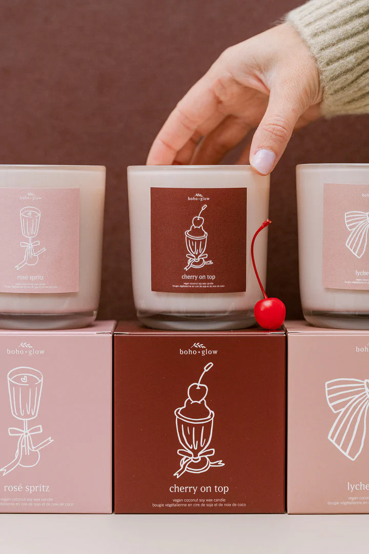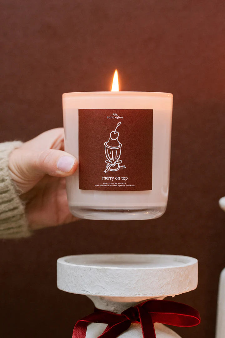 Thoughtfully designed and hand-poured, cherry on top is a signature boho + glow creation—crafted exclusively for our brand and unlike anything else.