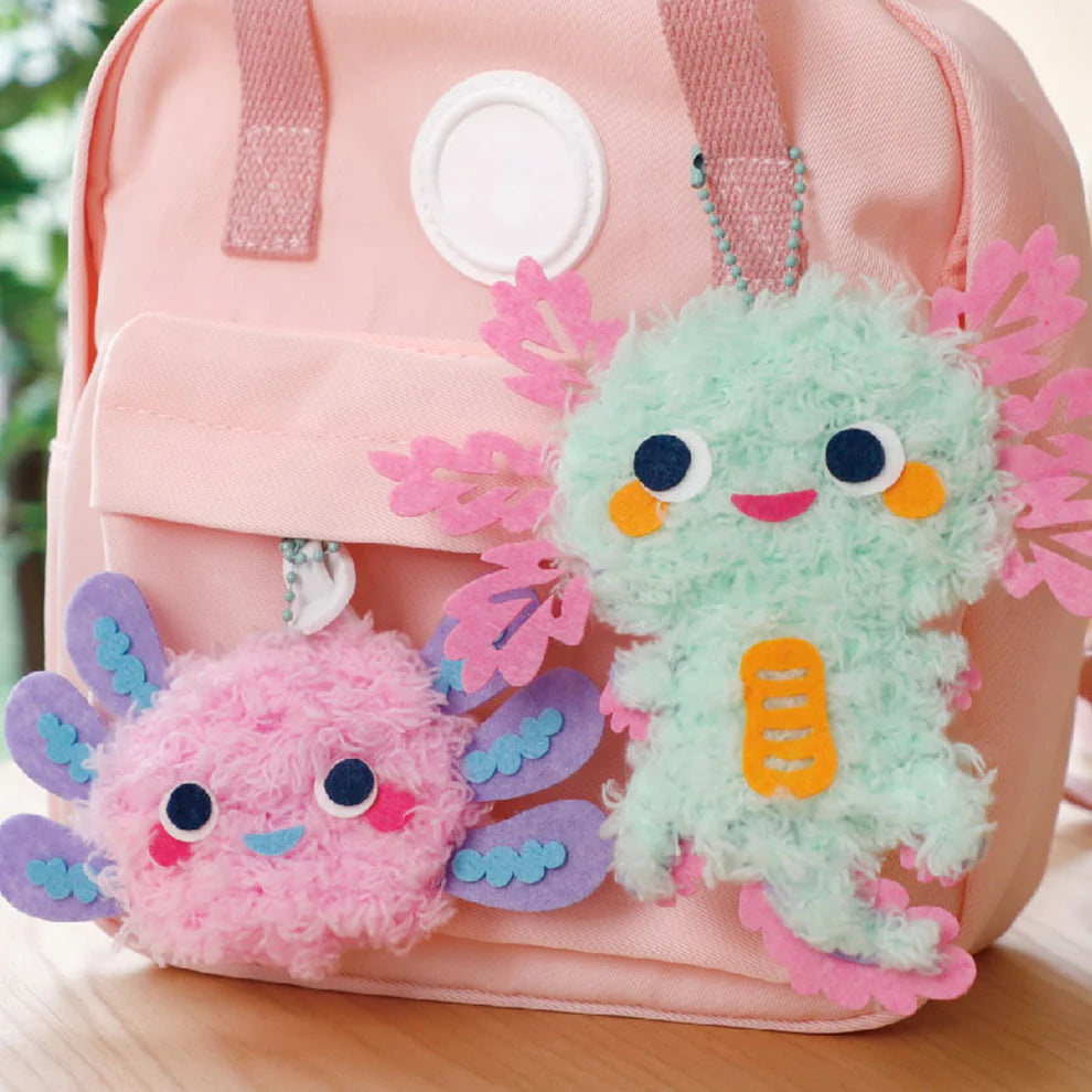Kids create two charming axolotl pendants they can proudly display or attach to backpacks, pencil cases, or gift bags