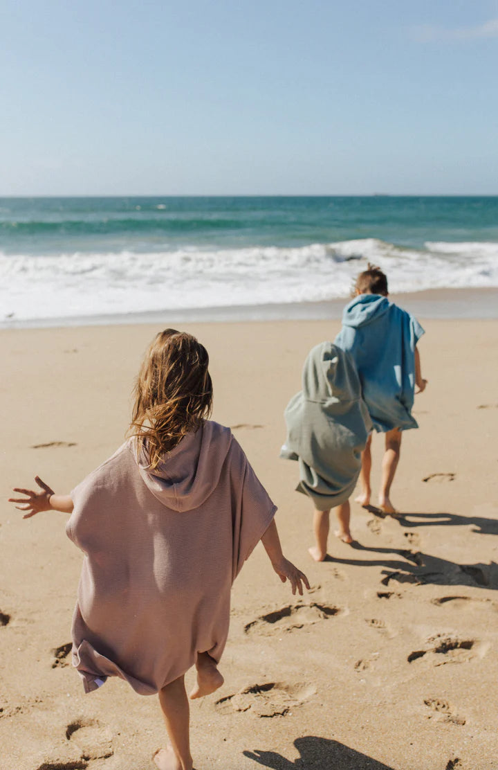 The design of our Beach Poncho features an oversized hood, drop shoulder arms, slits for movement and pockets (because everything is better with a pocket!). Inside you will find a handy loop to hang and dry these ponchos. Suggested for little ones aged 2-6Y, they are a grow with me design that works for any size!