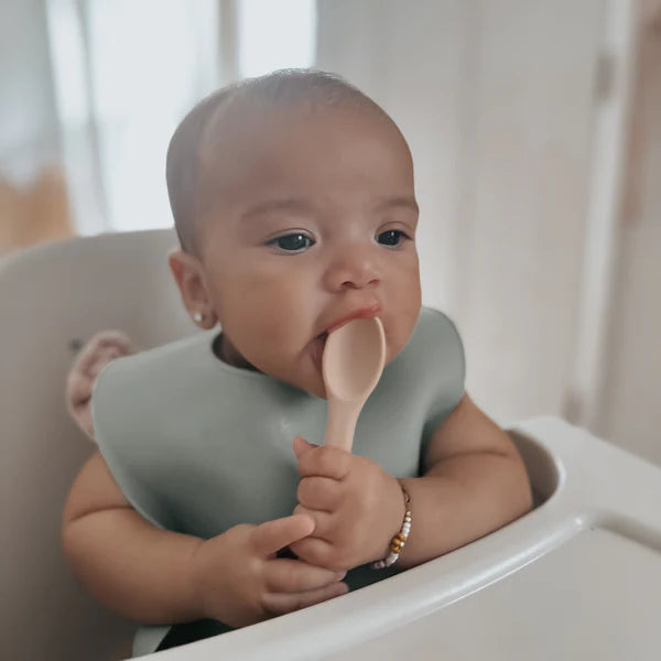 Introduce your little one to whole foods with noüka’s Silicone Spoon Set. The soft silicone protects sensitive gums and budding teeth. The long handle is comfortable for parents to hold while feeding. Plus, it’s easy for little ones to grasp when they are ready to learn self-feeding. Made from food grade silicone that is dishwasher safe, our spoons are easy to clean, durable, and long-lasting. The Silicone Spoon Set is available in an array of calming, modern colors for your little one.