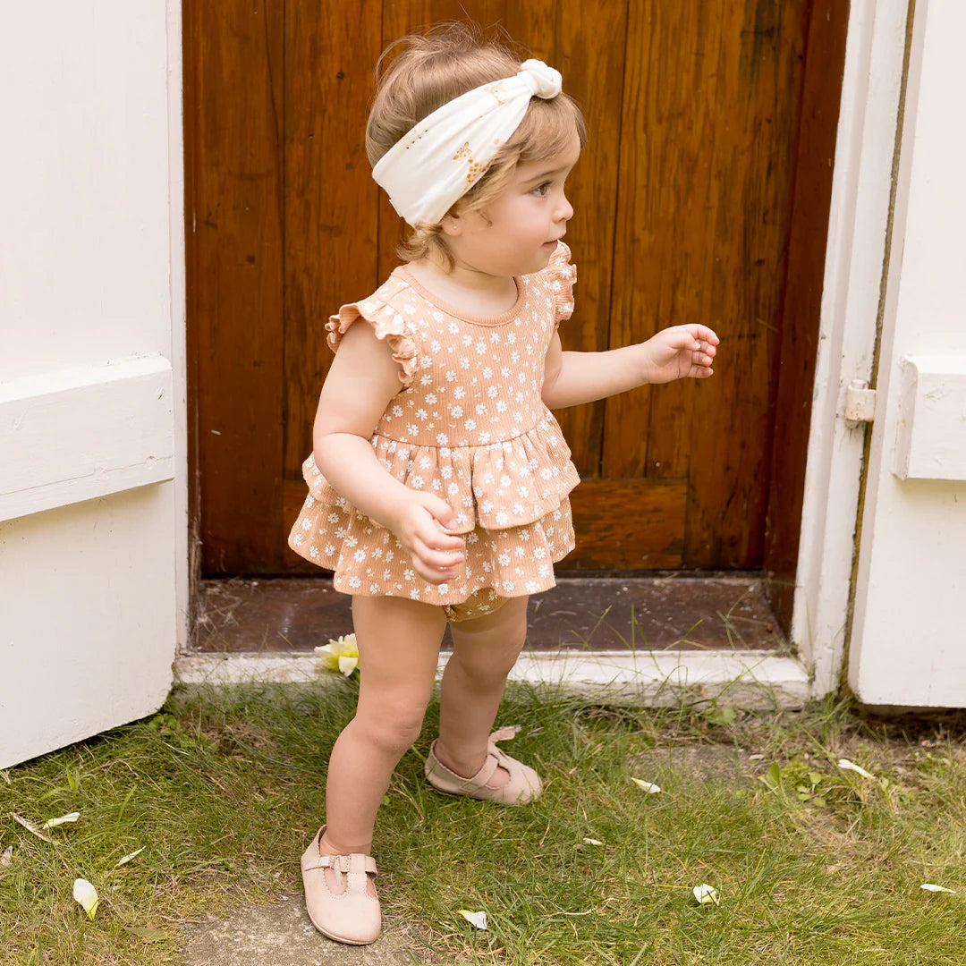 Pretty yet practical, this floral print outfit set features a frilly top with flutter sleeves and coordinating pants. Made from organically grown cotton rib, the set keeps her cool and gives her the flexibility to crawl, run, explore and play. With a gently elasticated waistband, the pants offer a comfortable fit while the button placket at the back of the top makes for easy dressing.
