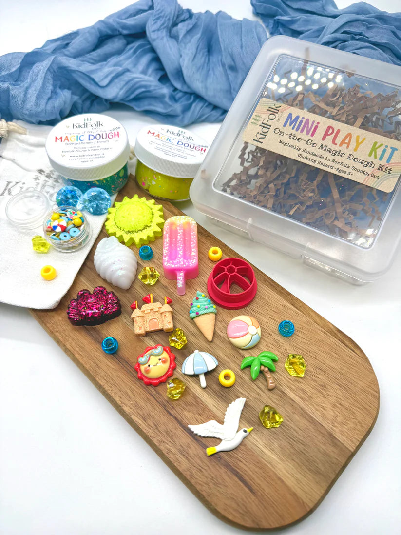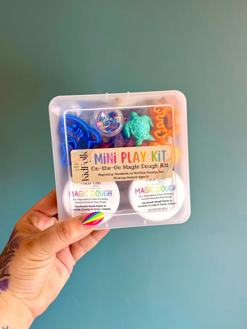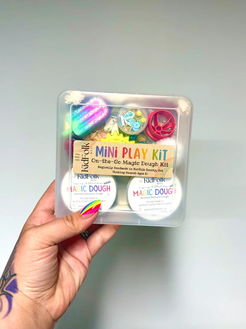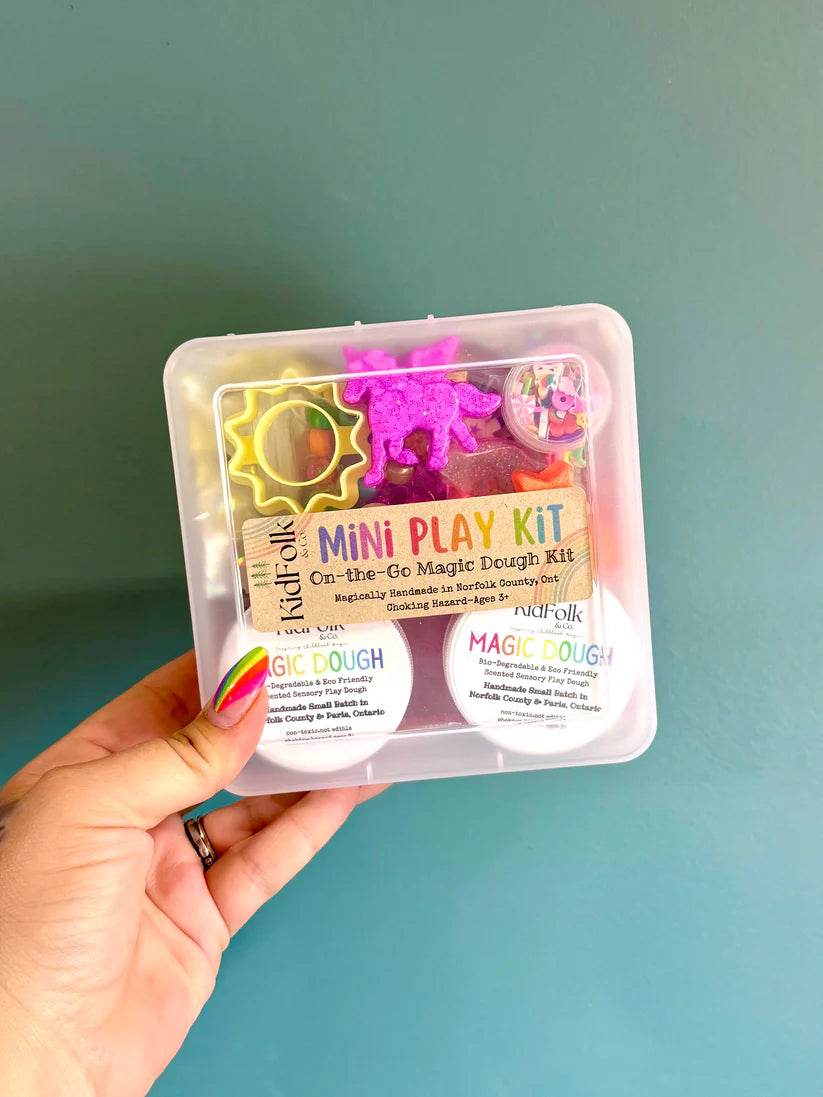 Let your child explore their senses with our small batch handmade Magic Dough! Each mini kit will come with two 2 oz Magic Doughs, a themed charm pack, our handmade resin toys, an eco-cutter, polymer clay sprinkles, acrylic gems and a canvas bag to hold all the small parts!