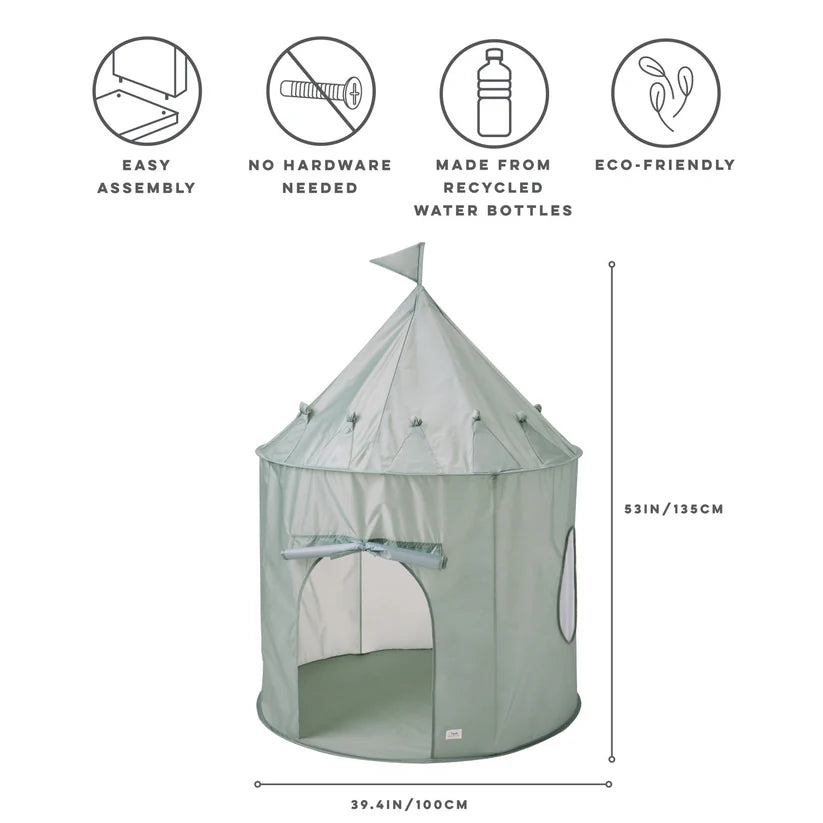 The 3 Sprouts Recycled Fabric Tent is the perfect play tent for your child! Easily assembled, lightweight and transportable, this tent will bring your child's imaginary world to life! This is the perfect place to play with friends or get cozy to read a book. Comes with tear-resistant recycled polyester and poles for sturdiness. Comes in solid colors and prints to fit seamlessly in any room of your home!Â