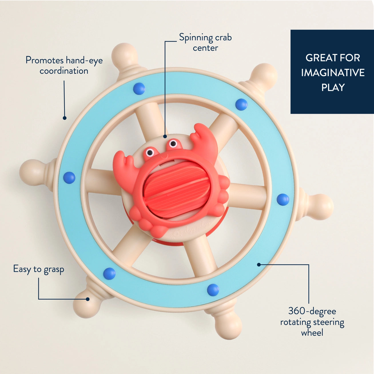 Real talk: bath time can get a little unhinged, but we’ve got you covered! The Itzy Captain is your new bathtime matey: a nautical spinner that lets baby imagine they’re sailing the seas while you get them squeaky clean. With a suction cup that sticks to flat, smooth surfaces, you can mount it to your tub wall or take it along for fun by land or sea. Next time baby gets a little crabby, this trusty gadget will be your anchor. Smooth sailing ahead! 𝐅𝐞𝐚𝐭𝐮𝐫𝐞𝐬 • 360-degree steering wheel with a cute crab co-captain at the center • Strong suction cup base sticks to smooth, flat surfaces like a pro • Encourages motor skills, hand-eye coordination, and imaginative play for your tiny sailor