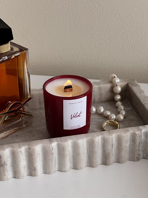 Each candle is hand-poured into a deep red glass vessel and wrapped in sheer ribbon, making this the perfect gift for yourself or someone special.