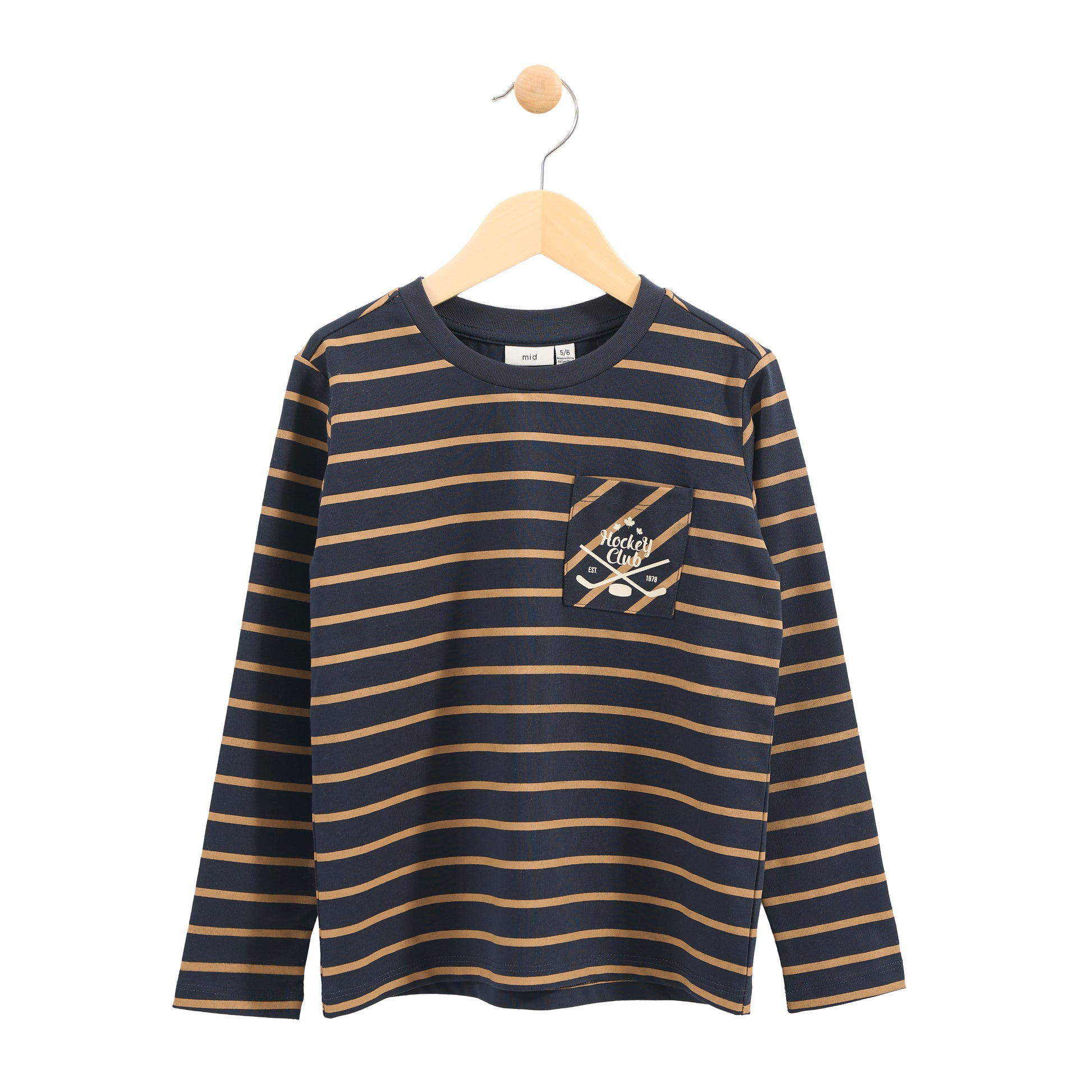 Navy/Caramel Hockey Stripe Long Sleeve Top