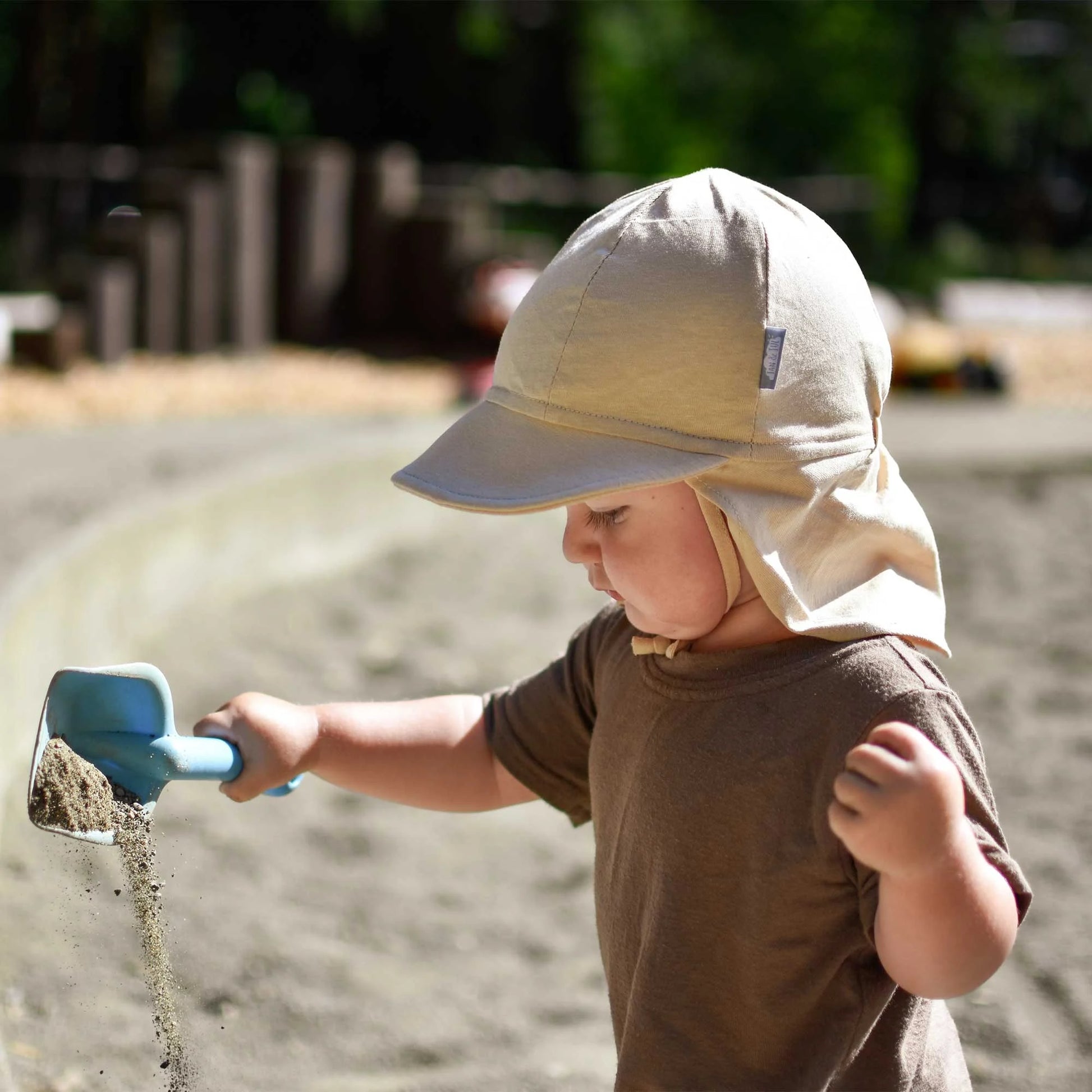 The UV protection from our cotton baby cap comes from the weave of the fabric and construction of the hat. Designed with a perfectly sized soft brim and neck flap to comfortably shield your child’s face, ears, and neck from the sun. Made with 100% breathable cotton, rated UPF50+ and safe for babies’ delicate skin with no harmful chemicals, dyes, or solutions added.