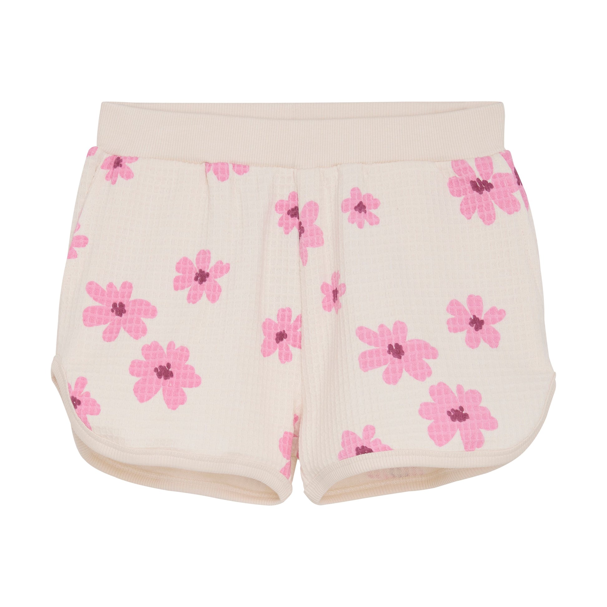 Nice sweatshorts with allover print from Minymo. The shorts are made of 100% cotton and have a nice floral print all over. Elastic at the waist ensures a good fit. Front pockets.
