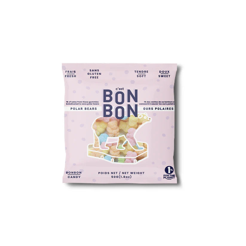 At La boîte à bonbons, we are committed to supporting causes that really mean something to us. In these little pink bags, you will find small pastel-colored bears that we decided to call polar bears!