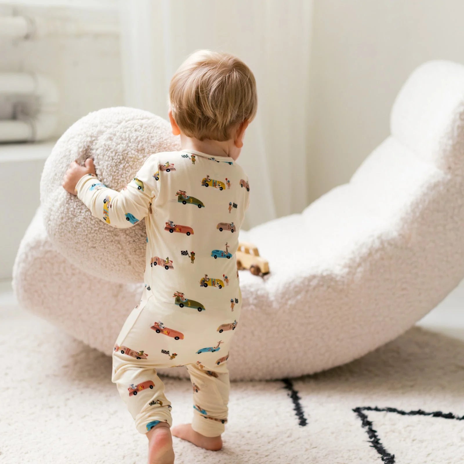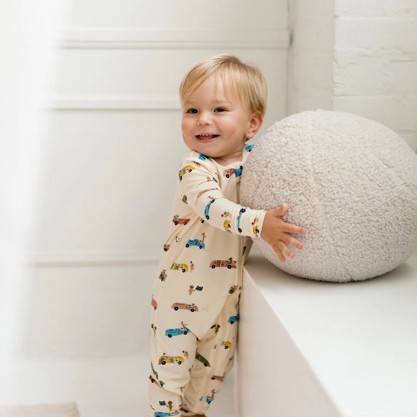Inspired by the thrill of racetrack mornings and the playful roar of little engines, this collection brings a fun, energetic touch to everyday cozy. Made from our signature buttery-soft bamboo, the hand-drawn print combines bold racing red, sleek charcoal, and sunny yellow — a lively, timeless palette that sparks imagination and adventure.