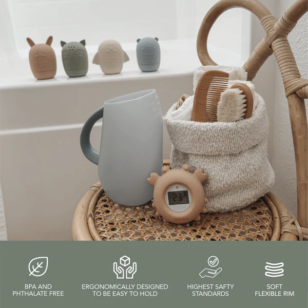 - Easy-grip handle – Ensures a secure and comfortable hold for parents during bath time