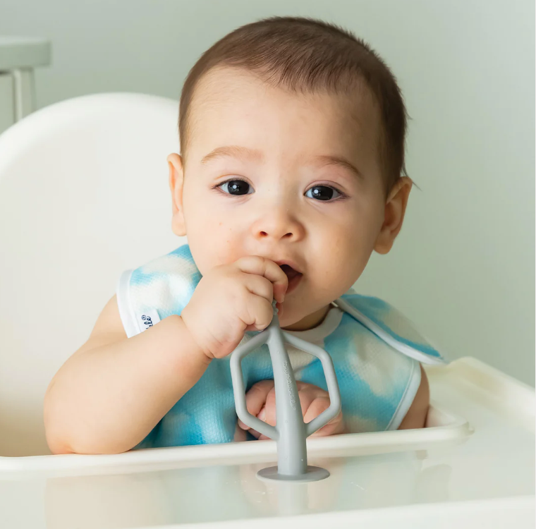 Tiny Twinkle's Silicone Training Toothbrush 2-Pack is the perfect way to encourage early dental hygiene! Made from 100% food grade silicone, the Training Toothbrush is both durable and soft on baby's gums. Featuring multiple textures to massage and stimulate baby's gums, the toothbrush also has soft and gentle bristles to help clean new baby teeth. Easy to grip handles make using the toothbrushes simple for little ones. Suction base keeps the toothbrush upright and away from germs. Dishwasher and freezer safe. For ages 6 months and up.