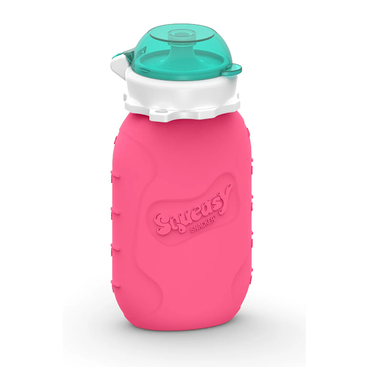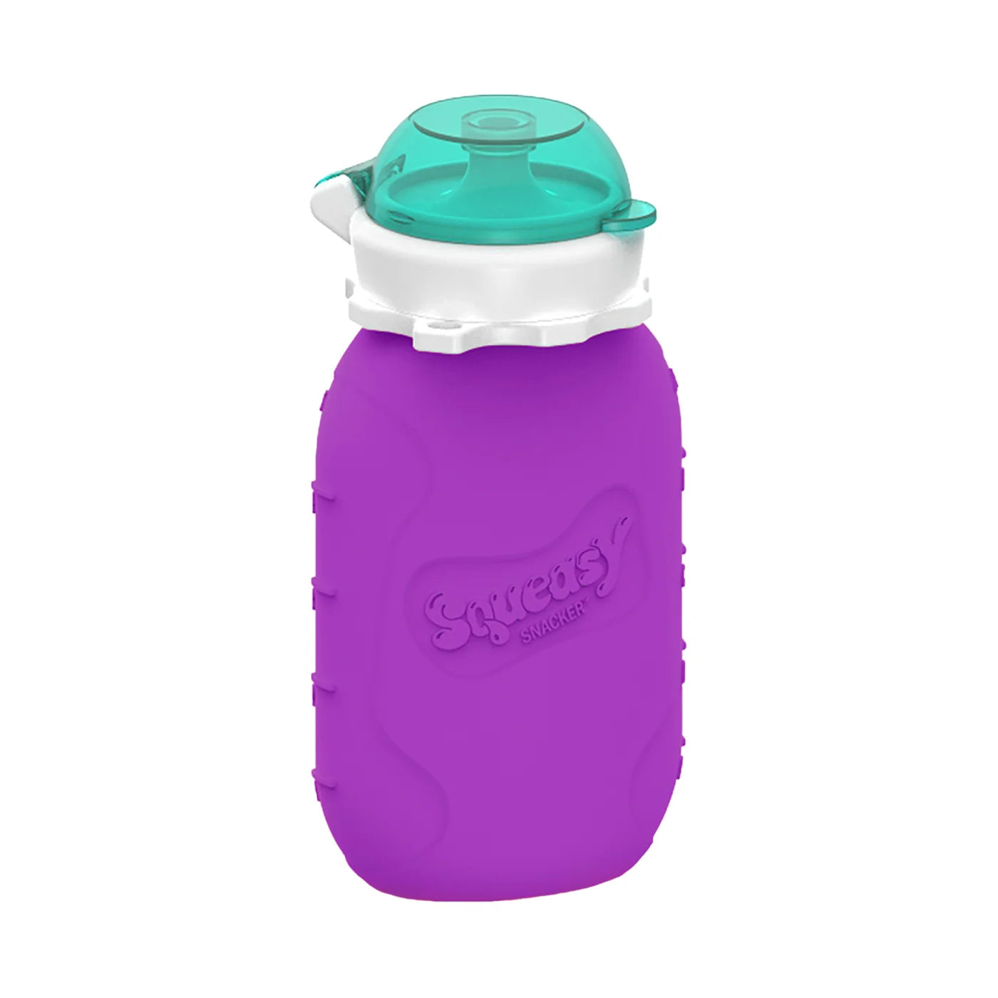 The Squeasy Snacker™ is the most versatile reusable food pouch on the market. It was designed by parents for parents to provide easy feeding on-the-go™. It is the only food pouch that offers the patent pending 2-in-1 removable NO SPILL INSERT™ for no spill or free flow. It not only works great for purees, smoothies, applesauce, yogurt, pudding, etc., but it also prevents spills when serving water and juice unlike other food pouches.Easy to fill: Features a wide opening. The collar and spout are easy to grip for opening and closing.Easy to use: Simply fill with delicious blends of freshly pureed food, applesauce, yogurt, water or juice, etc.Easy to clean: The bottle can be turned inside out and all parts are top rack dishwasher safe.