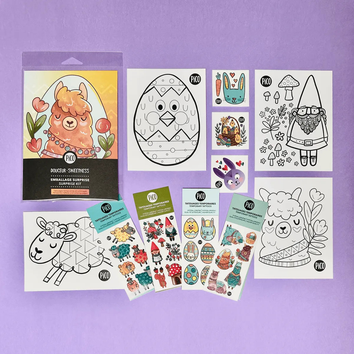 Coloring, card and packaging designed and printed in Canada.