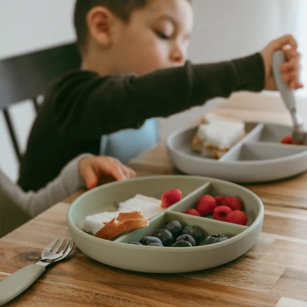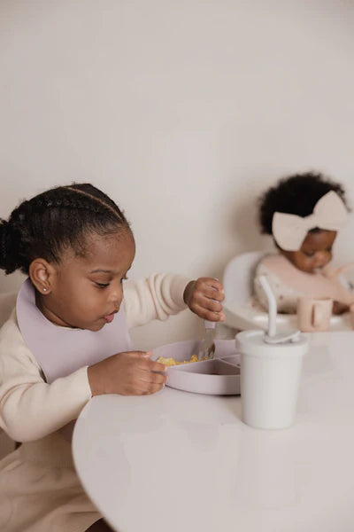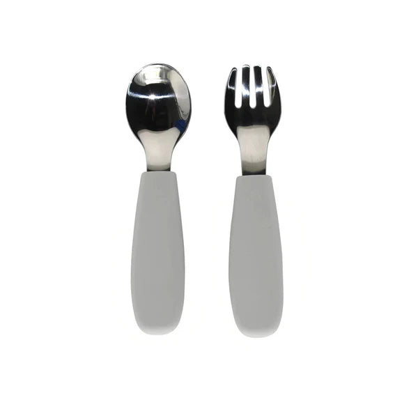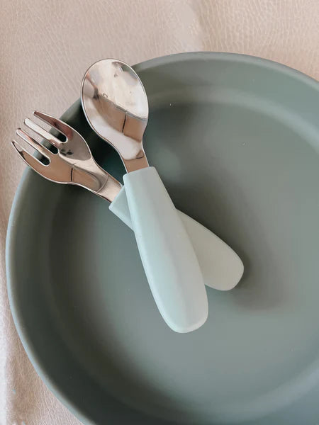 Self-feeding is simple and safe for little ones with noüka’s Toddler Cutlery Set. This set includes a fork and spoon with smooth edge design for safety. The soft silicone handle allows for a comfortable grip as they practice self-feeding. Made from food grade silicone and stainless steel that is dishwasher safe, our dinnerware set is easy to clean, durable, and long-lasting. The Toddler Cutlery Set is available in an array of calming, modern colors for your little one.