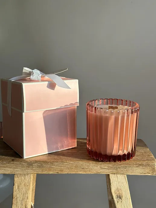 Handcrafted candle using 100% non-GMO natural soy wax, crackling wooden wick, premium fragrances & essential oils.