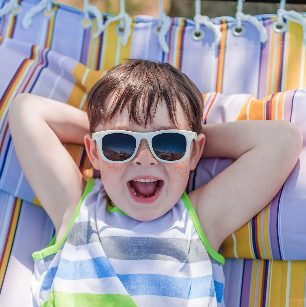 Each pair of sunnies comes with an optional strap β that means no more lost sunglasses! They stay secure on the most active kids at play, or when a cheeky baby pulls! The strap is soft, stretchy, non-irritating, and adjustable for years of use. Enjoy peace of mind knowing that your little oneβs eyes will be protected in style, all summer long.